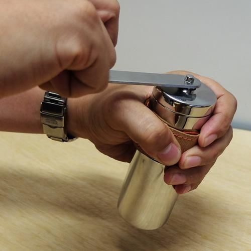 ・強力なマグネット着脱式で直径約4.6〜5.0cmの筒状コーヒーミルにワンタッチでバンドを装着出来ます。