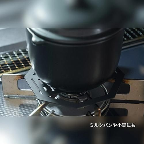 ガスコンロの五徳に置くだけで、モカエキスプレスやミルクパンを安定して設置可能。