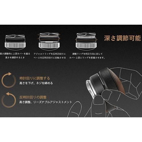楔形のコーヒーディストリビューターは、コーヒー粉を効率的に均等に分配し、抽出時のチャネル効果を減少させます。