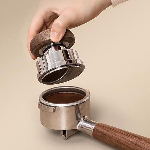 独自のスプリング構造により、従来のタンパーのように一気に圧力をかけるのではなく、徐々に力を加えることで、コーヒーベッドを均一に押し固めます。
